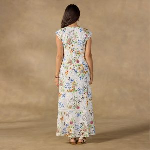 More is just enough for the Camarillo Eyelet Dress—with the freshest floral print on all-over eyelet fabric. The subtle structure of the seamed bodice flatters. while her slight flutter sleeve is a bit of a flirt. Center back zipper; fully lined. Cotton/rayon. Machine wash. Imported. Exclusive. Sizes 0–14. Approx. 49.75l.